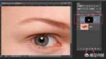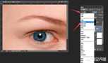 找到一张美瞳素材,调整到正确的位置并更改为正片叠底和调整透明度,如图所示: