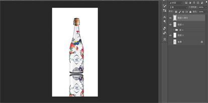这个非常的简单,如果瓶子是放桌面上的,形成倒影,这个时候先把瓶子素材复制一层,然后垂直翻转一下。