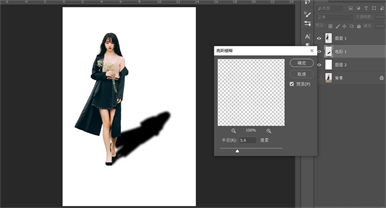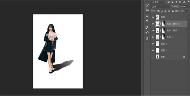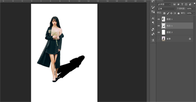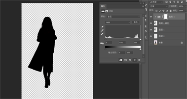 人物的阴影个人觉得要做好真的不太容易,我一般用下边几种手法,我会把人物复制一层,然后用色阶把其调整为完全黑色。