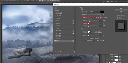 双击人物图层,会出来这个图层样式,最下边有个投影,你可以调整角度距离等参数,打造阴影,这种方法比较简单也很均匀。但还是建议多做几层。这里有个小技巧,之前在文章也提到过。当你用了图层样式后,右键点击这个fx,在倒数第三个有个“创建图层”的功能,当你点击确定后,这个阴影就以单独的图层创建出来了,方便复制和删除。