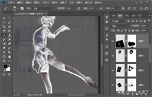 7、重复以上操作,拖入合适的烟雾素材,更改图层混合模式为“滤色”,执行“Ctrl+T”自由变形,栅格化图层,执行“Ctrl+shift+U”去色,“液化”。人物的所有部分都覆盖以后,烟雾人的效果就制作完成了。