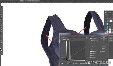 第四步:将图层移到主图主层下面,通过自由变换和液化工具将肩带调到满意的位置,然后用曲线工具,将颜色调深一点。这里一定要慢要温柔要有耐心。