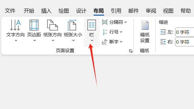 - 在“页面设置”组中,找到“分栏”按钮。