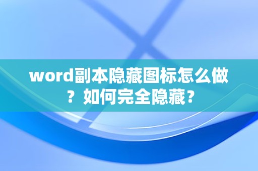 通过以上方法,我们可以去除Word副本隐藏图标。但有时我们还需要完全隐藏图标,即让Word不再显示任何复制内容的提示。以下是完全隐藏Word副本隐藏图标的方法: