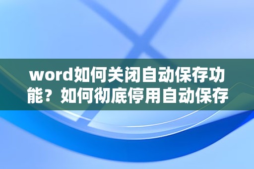 通过以上步骤,你可以在Word中关闭或彻底停用自动保存功能。希望这篇文章能帮助你解决问题。