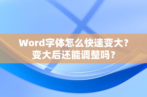 最佳答案<p style="text-align:center">一、Word字体快速变大的方法1. 使用快捷键在Word文档中,我们可以通过以下快捷键来快速改变字体大小:Ctrl+Shift+>:字体变大Ctrl+Shift+和Ctrl+Shift+<调整字体大小后,字体没有变化?回答:这可能......