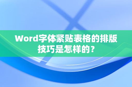 介绍了Word字体如何紧贴表格的五种方法,您可以根据实际需求选择合适的方法进行操作,在实际应用中,还可以结合其他排版技巧,使文档更加美观、易读。