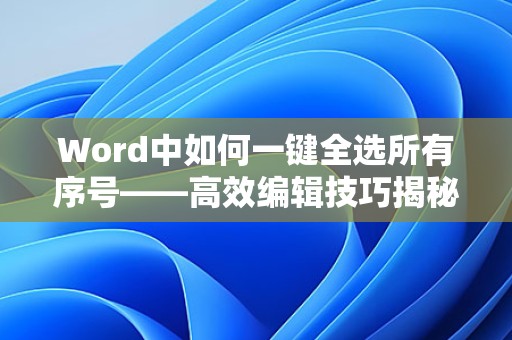 在Word文档中,我们可以通过快捷键来实现序号全部选中的功能,具体操作如下:
