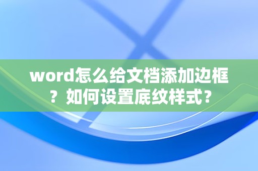 通过以上方法,您可以在Word中轻松地为文档添加边框和设置底纹样式,使您的文档更加美观和专业。