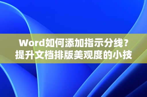 通过以上步骤,我们可以在Word文档中轻松添加指示分线,提升文档的排版美观度和可读性,在实际操作中,可以根据个人需求和文档风格进行调整,以达到最佳效果。