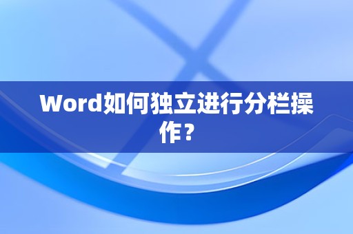 最佳答案1、打开Word文档:打开你想要进行分栏操作的Word文档。2、选择分栏工具:在Word的菜单栏中,找到“页面布局”选项卡。3、点击“分栏”按钮:在“页面布局”选项卡中,你会看到一个“分栏”按钮,点......