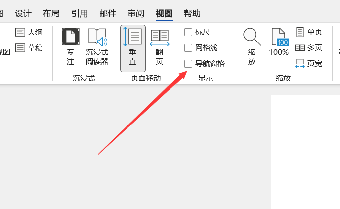 除了使用快捷键外,我们还可以通过导航窗格来快速跳转到页首。