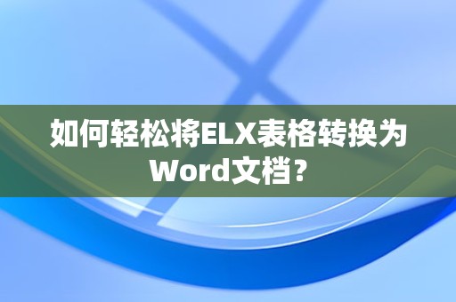 将ELX表格转换成Word文档的方法有多种,您可以根据实际情况选择合适的方法,在实际操作过程中,请注意注意事项,并掌握相关技巧,以便更好地完成文档格式转换。