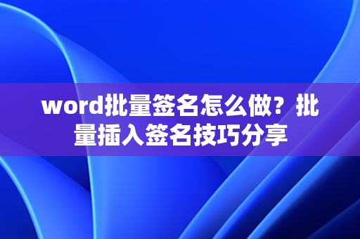 在Word中,可以自定义快捷键,将批量插入签名操作设置为快捷键,提高工作效率。