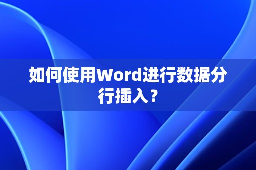 通过以上方法,你可以在Word中灵活地插入和分行数据,使文档更加美观和易读。