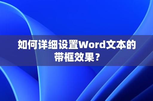 通过以上步骤,您可以轻松地在Word文档中设置文本带框,美化您的文档。