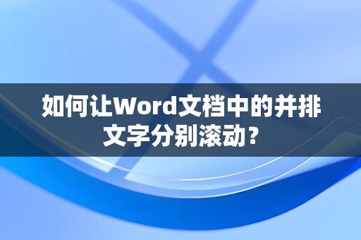 通过以上方法,我们可以在Word文档中实现并排文字的分别滚动,在实际应用中,您可以根据自己的需求选择合适的方法,熟练掌握这些技巧,将有助于提高您在Word文档编辑过程中的工作效率。