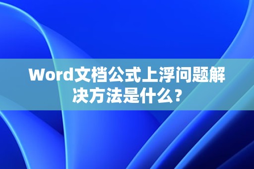 Word公式上浮是一个常见问题,但通过了解其原因和解决方法,我们可以轻松应对,希望本文能对您有所帮助。
