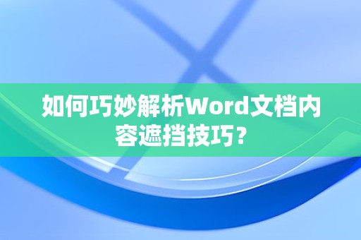 Word文档遮挡内容的方法有很多,可以根据实际需求选择合适的方法,掌握这些技巧,可以帮助我们在制作文档时更好地保护隐私或满足特定需求。