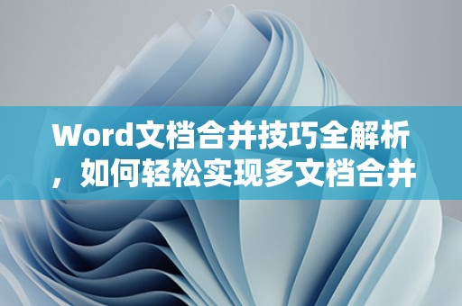 Word的合并功能可以帮助我们轻松实现文档的整理和阅读,通过本文的详细介绍,相信您已经掌握了Word合并功能的使用方法,在实际操作中,多加练习,您将更加熟练地运用这一功能,祝您在文档处理中一切顺利!