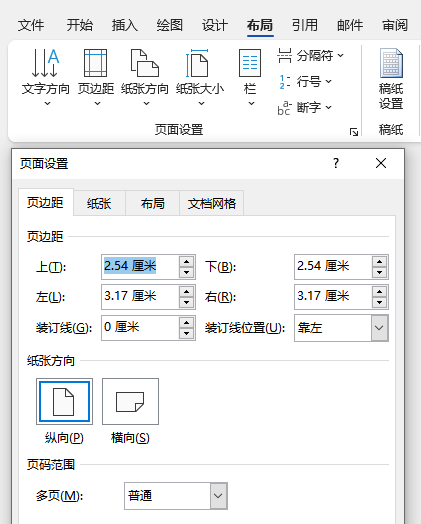 打开Word文档,在页面布局选项卡中,找到“页面设置”组,点击“页面设置”按钮,打开“页面设置”对话框。