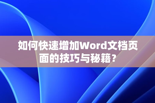 通过以上方法,您可以在Word文档中快速增加页面,在实际操作中,可以根据具体需求选择合适的方法,希望这些技巧能够帮助您更高效地处理Word文档。