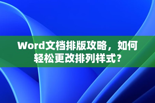 通过本文的介绍,相信您已经掌握了如何在Word中更改排列样式的方法,在实际操作中,您可以根据自己的需求灵活运用这些技巧,使您的Word文档更加美观、专业。