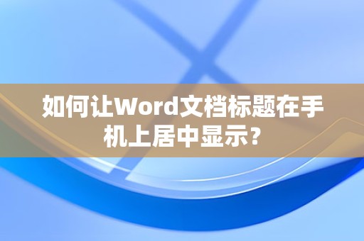 通过以上方法,您可以在手机上轻松地将Word标题居中,提高文档的美观度,希望本文对您有所帮助!