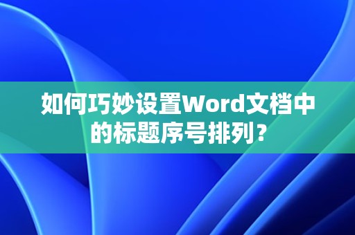 Word文档中标题序号的排列方法及技巧对于文档的整洁和阅读体验至关重要,通过以上方法,我们可以轻松地设置和管理标题序号,使文档更具专业性,希望本文对您有所帮助。