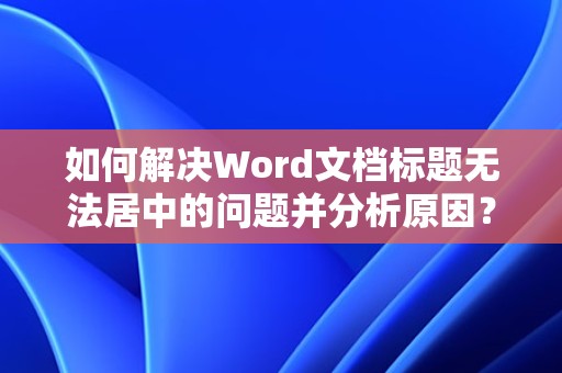 Word文档标题无法居中是一个常见的问题,但通过以上方法,我们可以有效地解决这一问题,在撰写文档时,注意样式设置、段落格式和段落标记的调整,以及文档模板的检查,可以避免此类问题的发生。