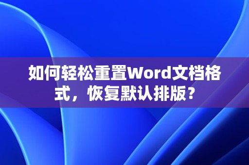通过以上方法,您可以轻松地恢复Word文档的默认排版,在实际操作中,掌握这些技巧将有助于提高您的文档编辑效率,希望本文对您有所帮助。