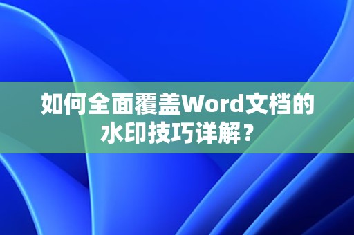 通过以上方法,您可以在Word文档中全面覆盖水印,既保护了文档的版权或隐私,又不会影响文档的美观和阅读体验,希望本文能对您有所帮助。