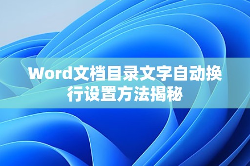 通过以上方法,相信您已经掌握了在Word文档中实现目录文字换行的技巧,希望这篇文章对您有所帮助。