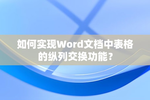 在Word中交换表格的纵列是一个简单但实用的操作,通过上述步骤,用户可以轻松地调整表格布局,以满足不同的文档需求,在操作过程中,注意保持表格的连续性和格式的稳定性,以确保交换后的表格美观且易于阅读。