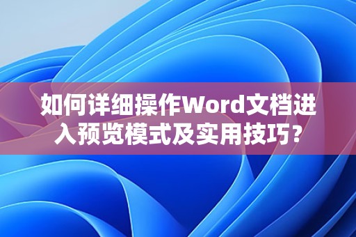 Word预览模式是一个非常有用的功能,可以帮助您在打印或导出文档前查看文档的最终效果,通过本文的介绍,相信您已经掌握了进入预览模式和运用预览模式技巧的方法,希望这些信息能帮助您更高效地使用Word。