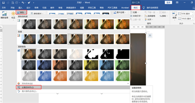 这里有一个简单粗暴的小技巧:选中图片,点击格式选项卡,然后在调整功能组中点击颜色下拉框,找到设置透明色便可。