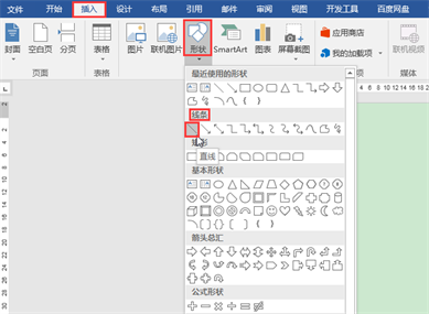 1. 执行”插入”-”形状”-”线条”-”直线”命令,按住键盘上的Shift键不放,在文档页面中绘制一条水平直线。
