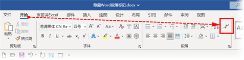 那该如何隐藏段落标记呢?其实很简单,只需点一下开始选项卡,段落功能组的“显示/隐藏段落标记”命令就可以隐藏段落标记。
