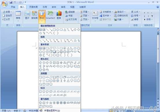 1、在“插入”标签下,在“插图”选项卡里,选择“形状”。然后,选择制作流程图需要用到的形状图形。