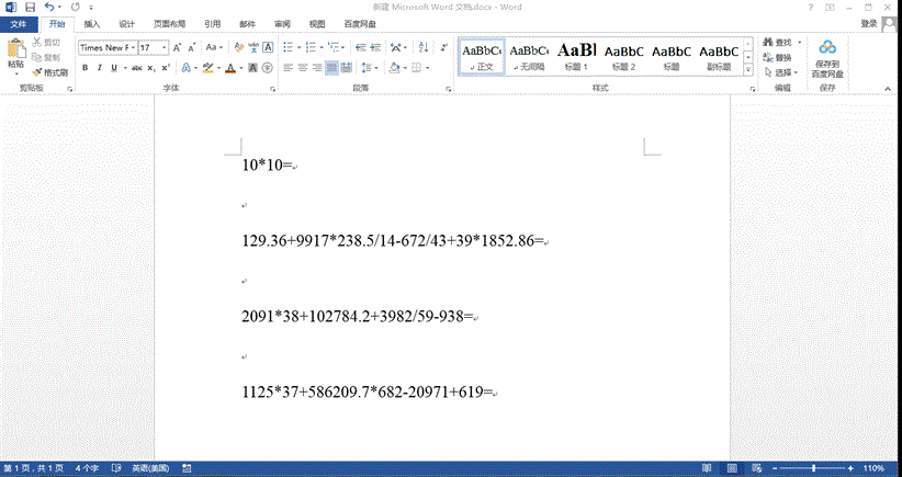 首先我们需要在快速访问工具栏中添加“计算”工具,在Word选项的快速访问工具栏中点击“不在功能区中的命令”,向下拖动,找到“计算”选项,确定即可,上面这个圆圈就是我们所需要的计算工具。选中文档中的算式等号前面的部分,然后点击一下“计算”,这时所有的内容就以计算完毕,我们直接在等号之后Ctrl+V粘贴就可以了,后面的几个算式采用同样的操作方式就可以了。这样,看似十分复杂的公式,在Word看来都是小菜一碟,来者不拒。