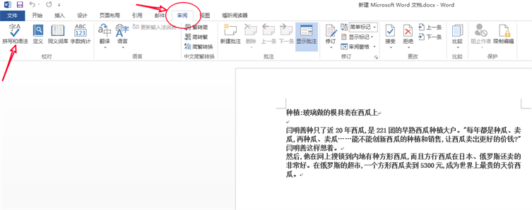 点击审阅–>拼写和语法 后会有什么神奇现象发生呢?