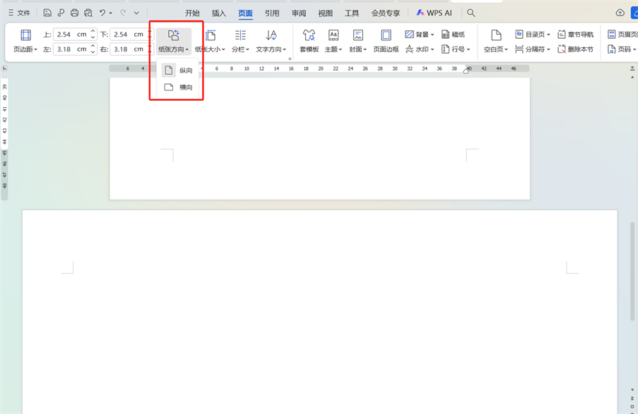 ③最后把光标停留在第五页,选择「布局」-「页面设置」-「纸张方向」-「横向」,这样第五页就变为横向,能很好地适配宽表格。
