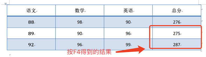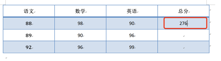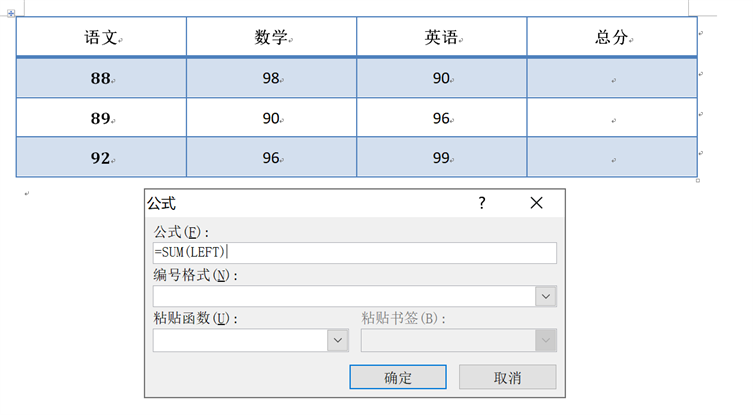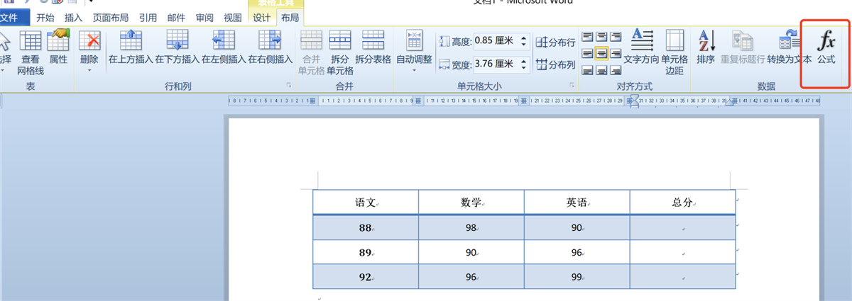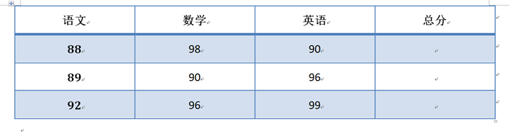 答案是有的,在Word中也可以运用公式来对一些数据进行计算,我们以求总分的形式来说明一下,这个功能如何用。