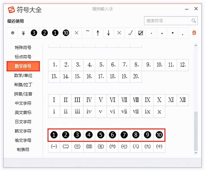 最佳答案操作步骤1.将鼠标光标定位到要输入数字序号的地方,将输入法切换为搜狗拼音输入法,单击输入法状态栏最右侧的“工具箱”按钮(四方格)。2.在打开的“搜狗工具箱”窗口中,单击列表中的“符号大全”。3.在弹出的“符号大全”窗口中,单击左侧列表中的“数字序号”,在右侧向下滑动鼠标找到黑底白字......