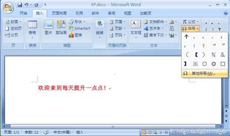 首先,通过“插入”标签,单击“符号”,选择“其他符号”。
