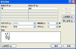添加拼音时,在【拼音指南】对话框中,从【拼音文字】里把拼音复制出来,然后粘贴到文字右边,如下图所示。