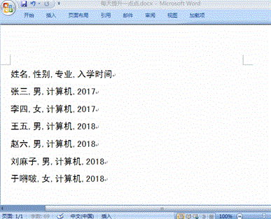 word中将文本文字转化成表格形式操作步骤: