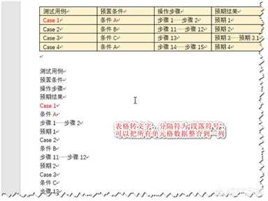 最特别的是分隔符选择“段落标记”,它会把所有单元格的数据由左到右,从上到下转换成一列显示。某些情况下,这将非常有用,如下图,我们把表格形式的操作步骤转换成了清晰明了的word文档了。