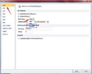 在Word选项窗口中的常规选项中点击屏幕提示样式,并选择黑色。如图所示: