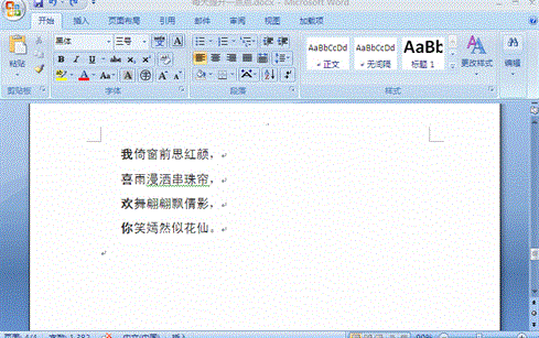 ➤按住Shift键再点选另外一个位置,可以选中开始光标位置到后来光标位置间的所有文字。(比如需要改变其中一段内容的字体、颜色时使用)